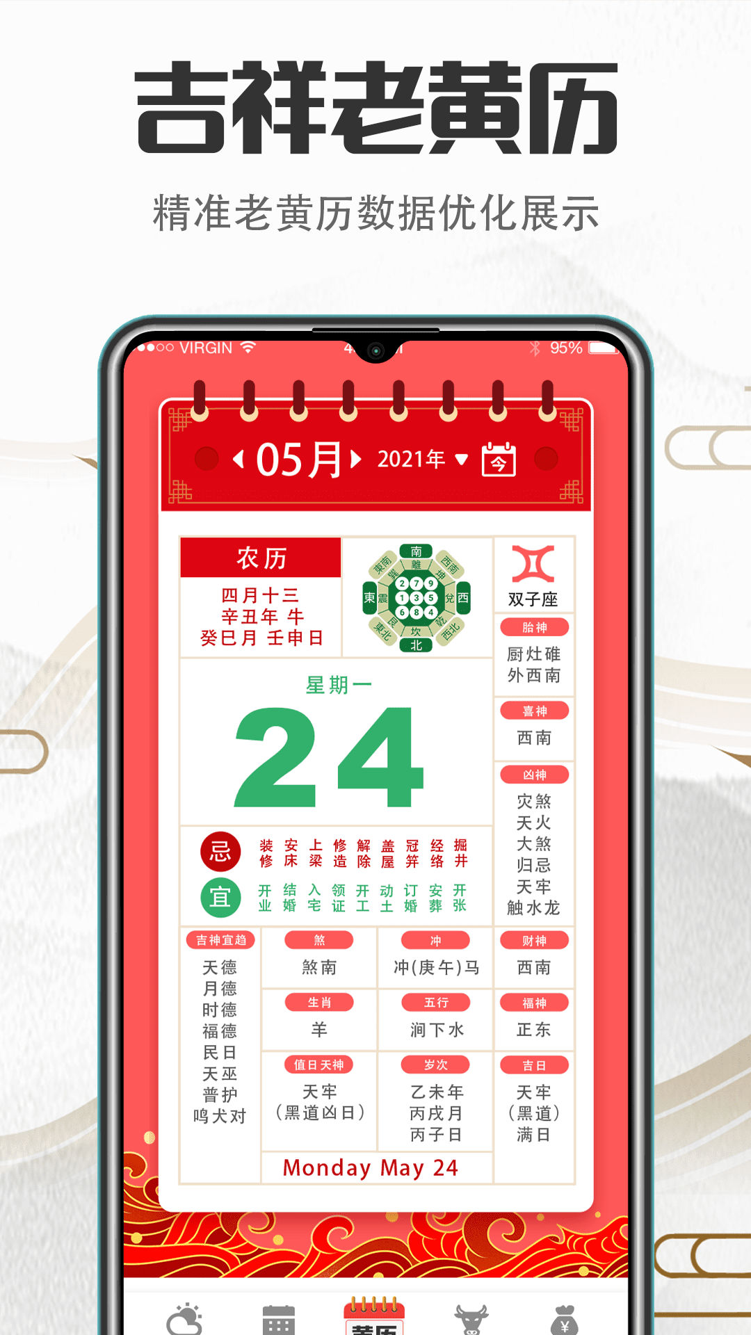 中华万年历是一款老牌手机日历应用,功能全主要提供日历天气查询,将日历、农历、时间、日程、待办、记事、节日、闹钟完美融合支持云同步;有农历、黄历、星座、解梦、日期计算、生理规律等实用功能。